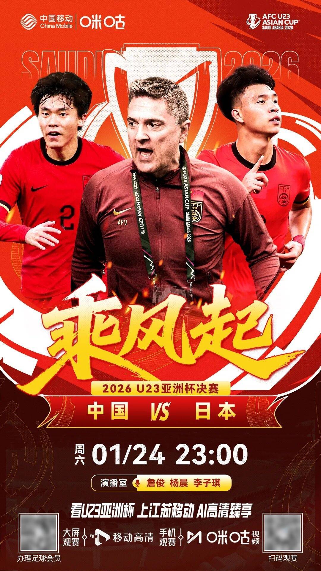 足球直播,欧洲杯直播,体育直播,球客直播,雷速体育,篮球直播,风驰直播,NBA直播,英超直播,足球比分,足球赛事,意甲,欧冠,世界杯,世界杯直播,村超,贵州村超,波胆,角球,串球,大小球北京时间1月24日23:00,一场备受瞩目的决赛即将上演。中国U23男足历史性地首次杀入U23亚洲杯决赛,将与卫冕冠军日本队争夺冠军。中国队在本届赛事中展现了惊人的防守稳定性,五场比赛一球未失。从小组赛以不败战绩出线,到淘汰赛顶住压力在半决赛3-0完胜越南,每一步都创造了新的历史。日本队是该项赛事的卫冕冠军,自小组赛开始进12球失1球保持不败。但在这支开赛至今未失球的中国U23身上,日本队未必能够占得便宜,1月24日我们一起见证历史时刻!