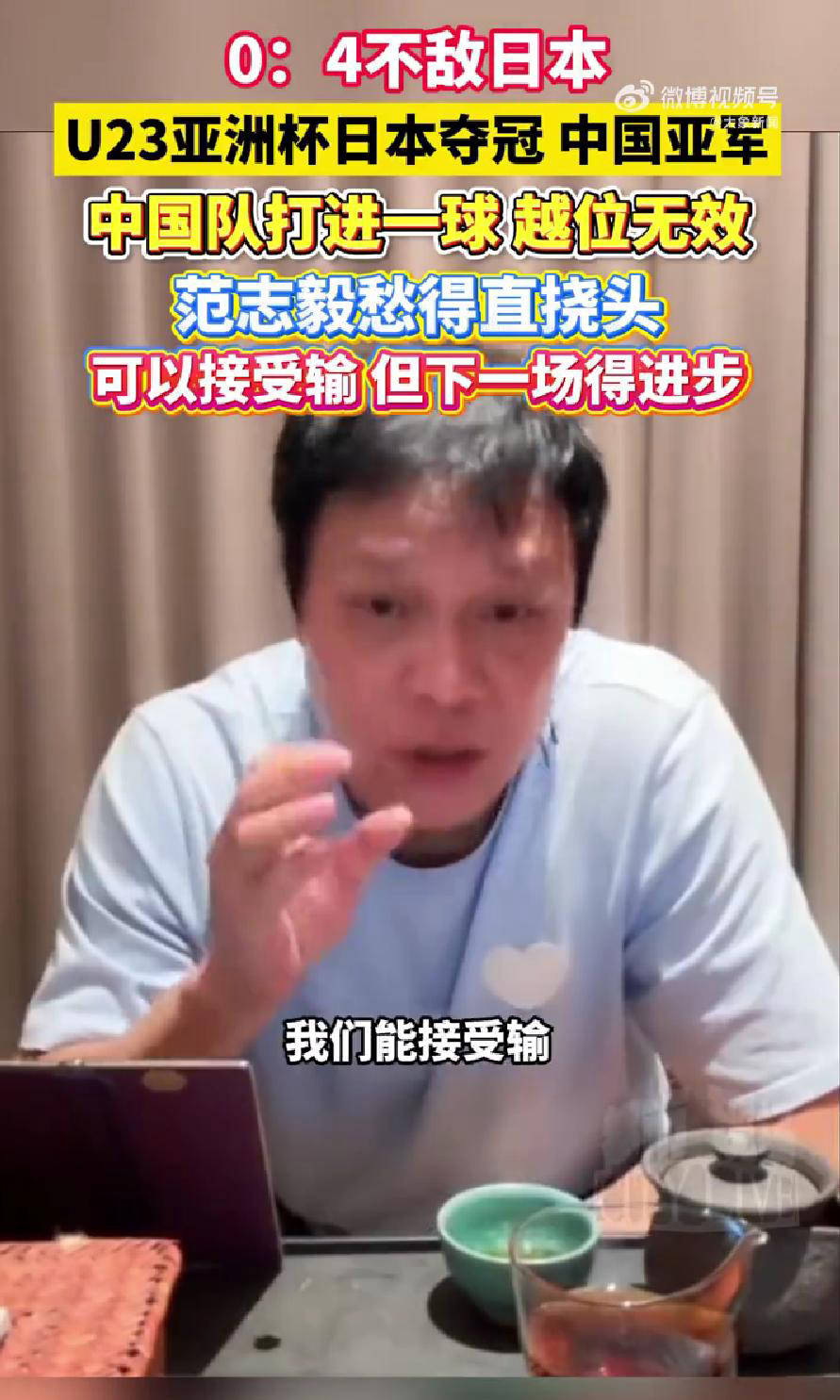 足球直播,欧洲杯直播,体育直播,球客直播,雷速体育,篮球直播,风驰直播,NBA直播,英超直播,足球比分,足球赛事,意甲,欧冠,世界杯,世界杯直播,村超,贵州村超,波胆,角球,串球,大小球1月25日凌晨,U23亚洲杯决赛落下帷幕,中国U23国足以0比4不敌日本队,获得亚军。赛后,中国足球名宿范志毅在直播中针对本场比赛进行了深刻点评,他坦言虽然这次失利让人遗憾,但“可以接受输”,关键是下一场比赛能否有所提升,争取将比分控制在0比3或0比2。