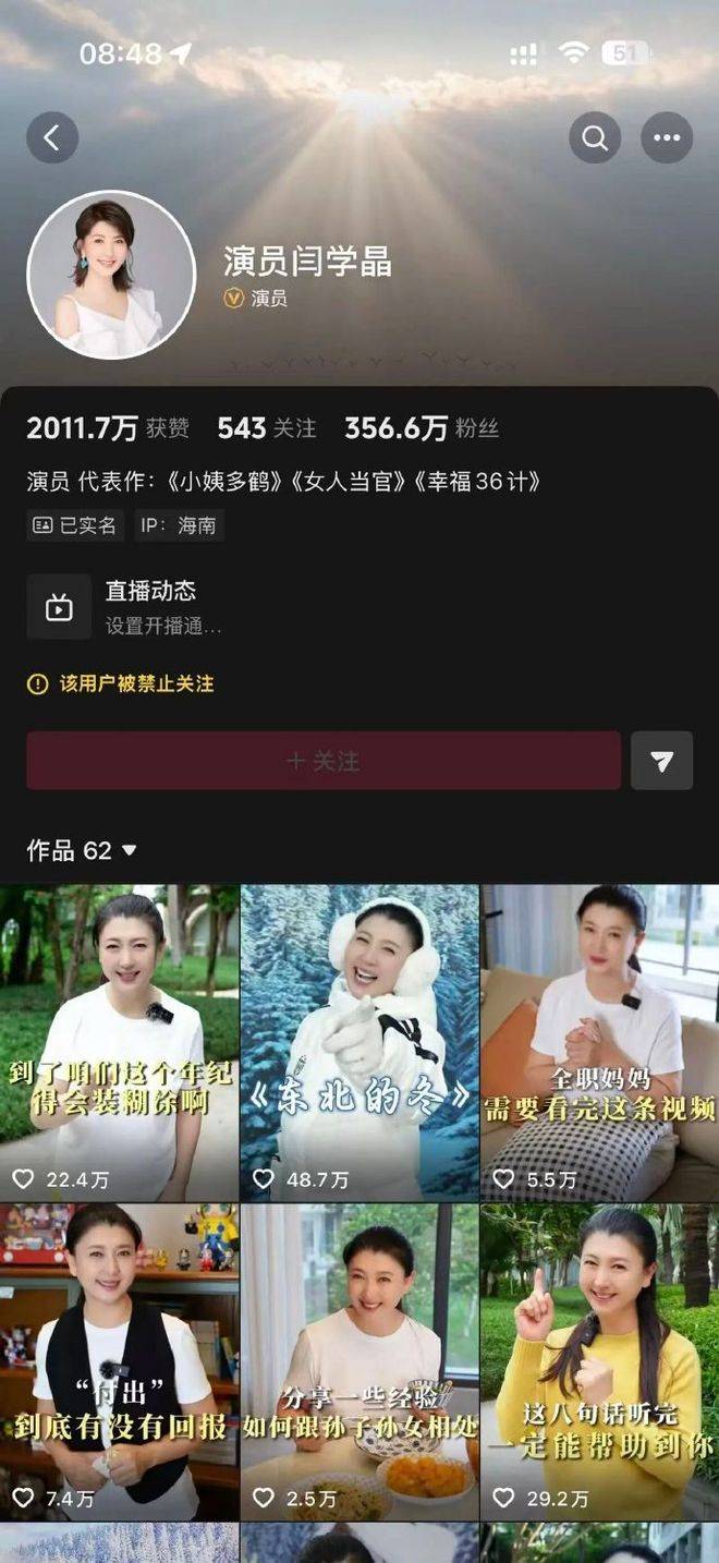 这次平台的反应非常迅速和直接。闫学晶的快手主页上显示,因违反社区规定,她的账号被禁关注,抖音也采取了类似措施。不仅主账号被封,关联的小号也全部清空了内容,并且被设置为私密状态。从数据上看,截止到1月10日上午,闫学晶的抖音粉丝数从360多万减少至约356.6万,而她的快手账号粉丝也骤降了超过20万。可见,这波取关潮反映了网友的强烈不满。