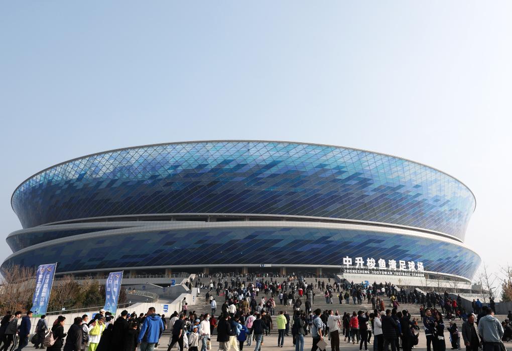 2025年11月15日,在大连梭鱼湾足球场举行的第二届辽宁城市足球超级擂台赛总决赛中,大连队4:0战胜本溪队,获得冠军,图为球迷到大连梭鱼湾足球场观看比赛。新华社记者 李钢 摄