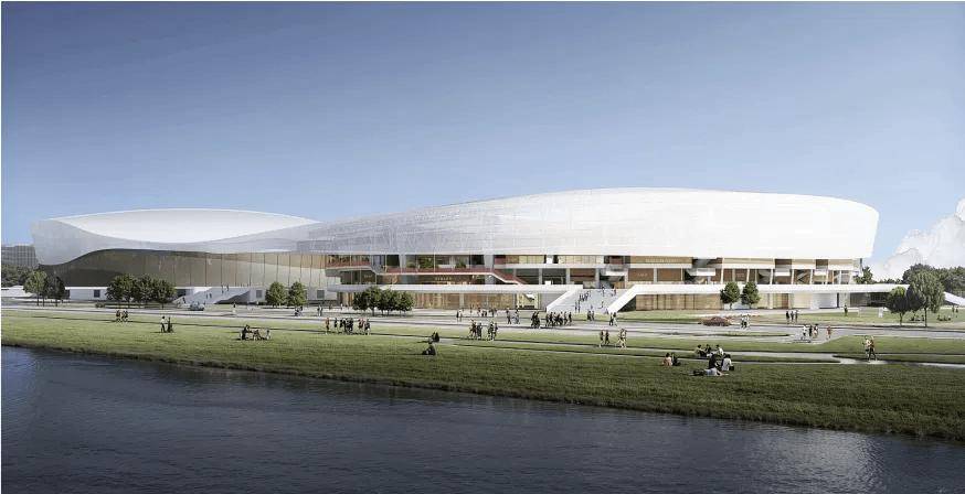 此次改造将现有1.8万座的综合体育场升级为可容纳5万人的专业足球场,拆除现有田径跑道、看台向上加建向内场延伸,完善体育配套等。